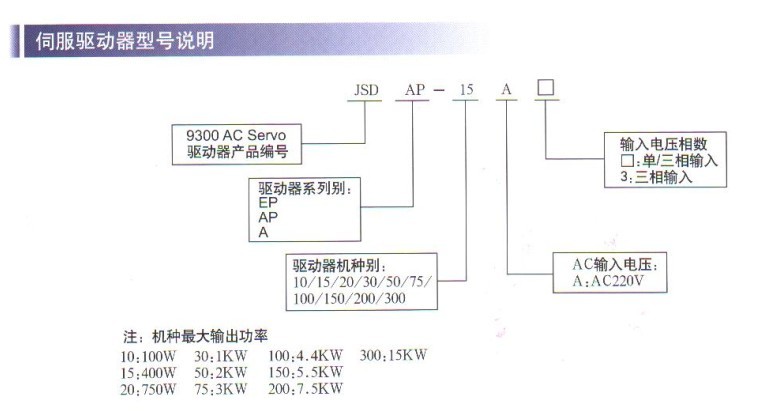 2、東元伺服JSDAP系列額外電壓、功率規模:220V級,合用馬達容量:200W~11KW